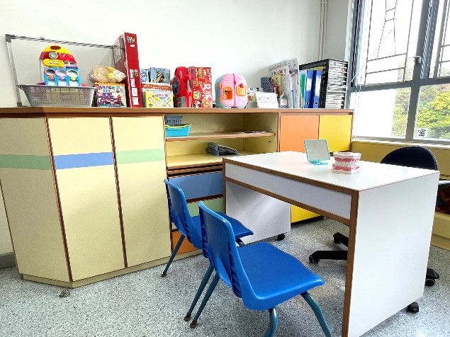 每間治療室內均有不同的治療教材,包括:語前玩具、教學圖咭、口肌工具以及桌上遊戲等。