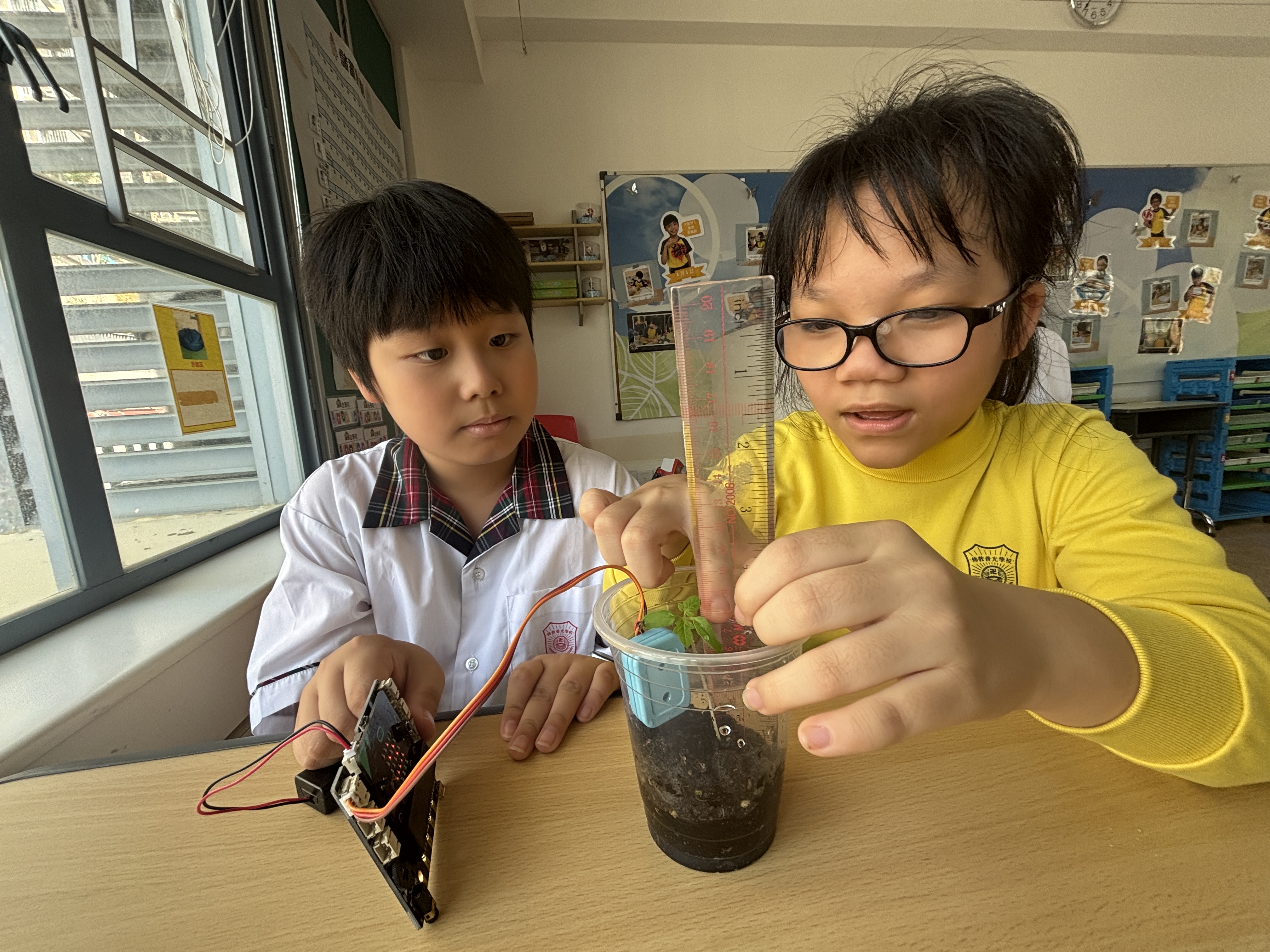 STREAM專題研習:學生運用Microbit濕度感應器量度泥土的濕度。 |