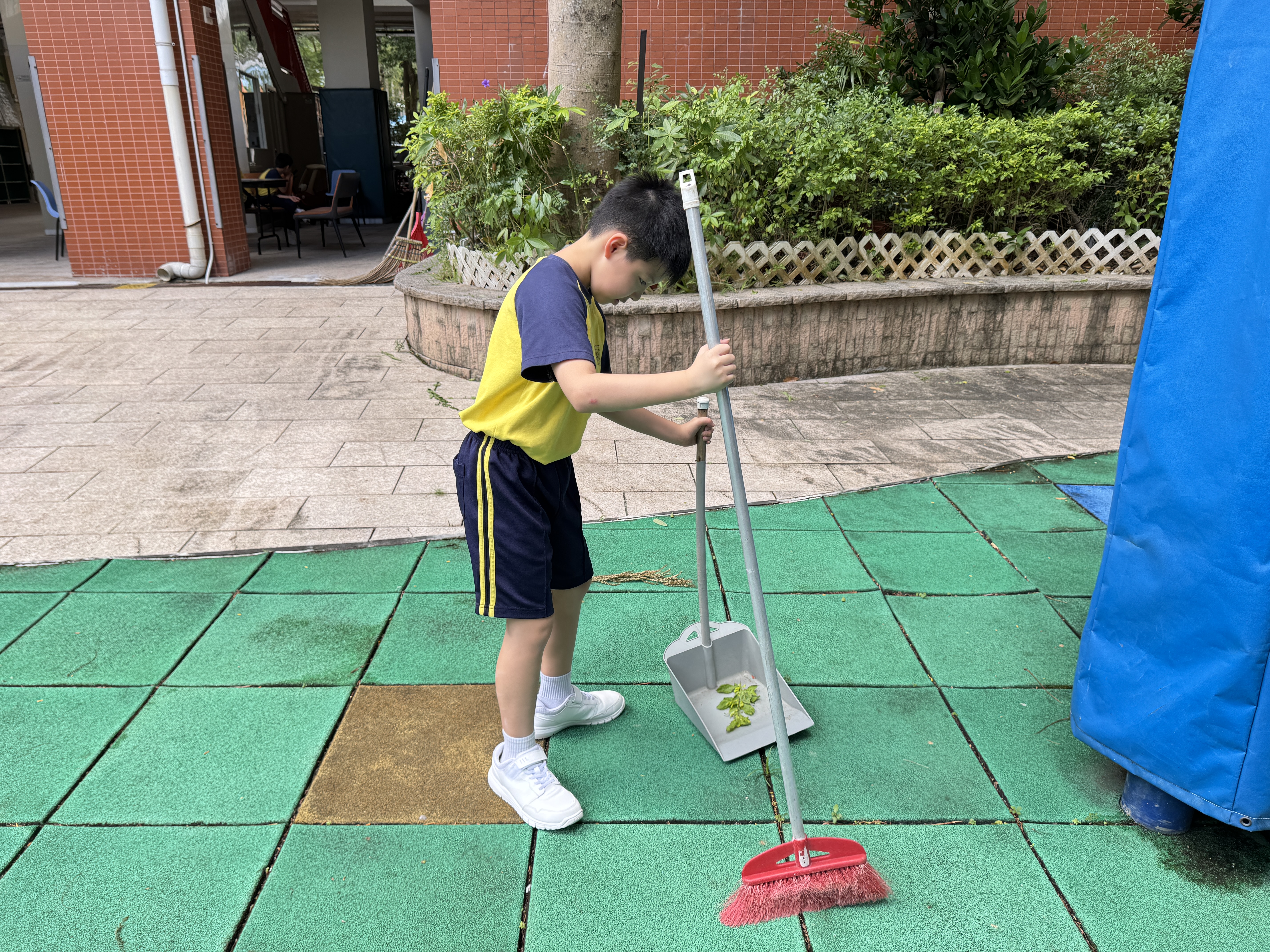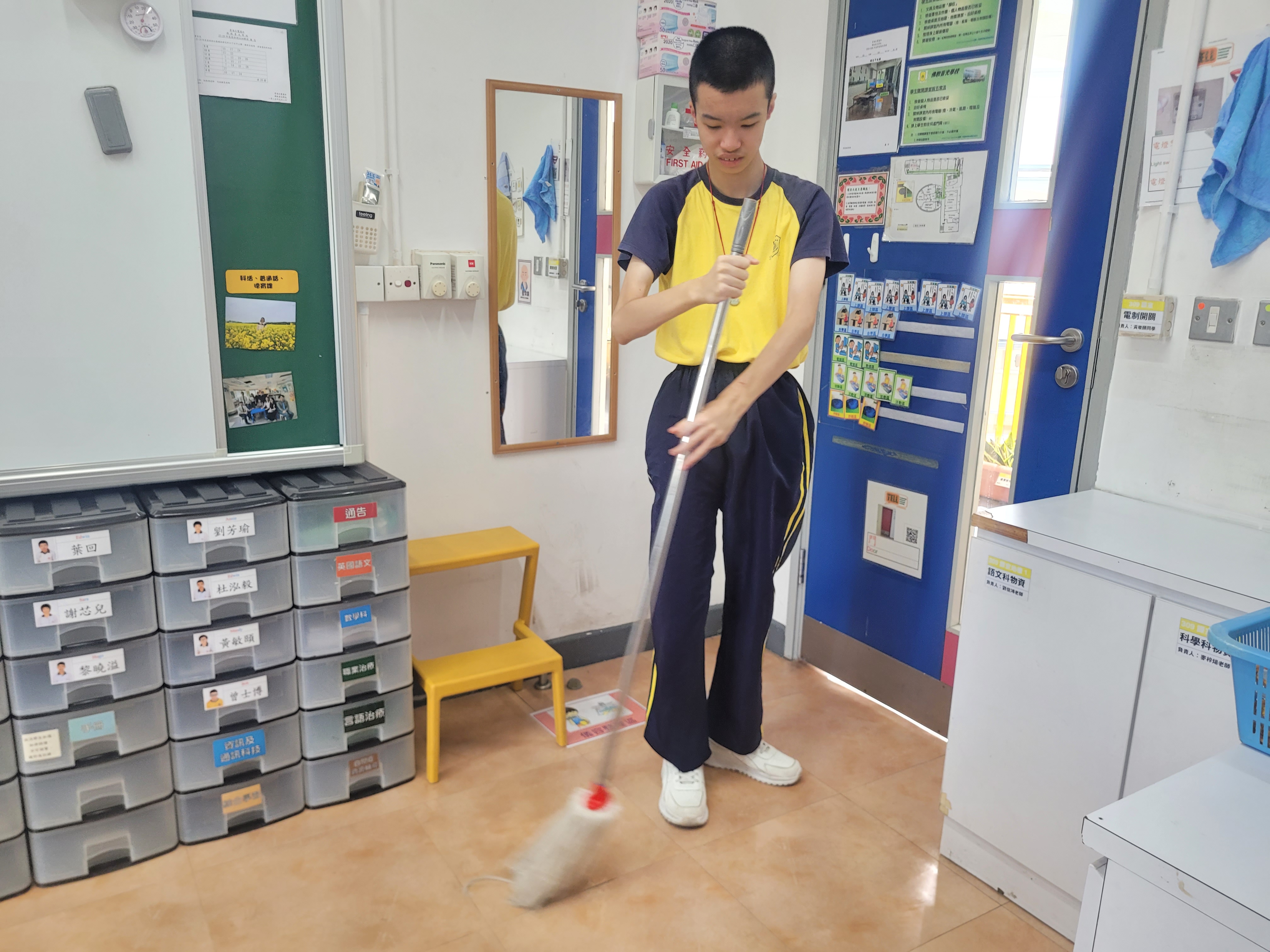 綜合學習:學生學習運用清潔工具進行掃地訓練 |