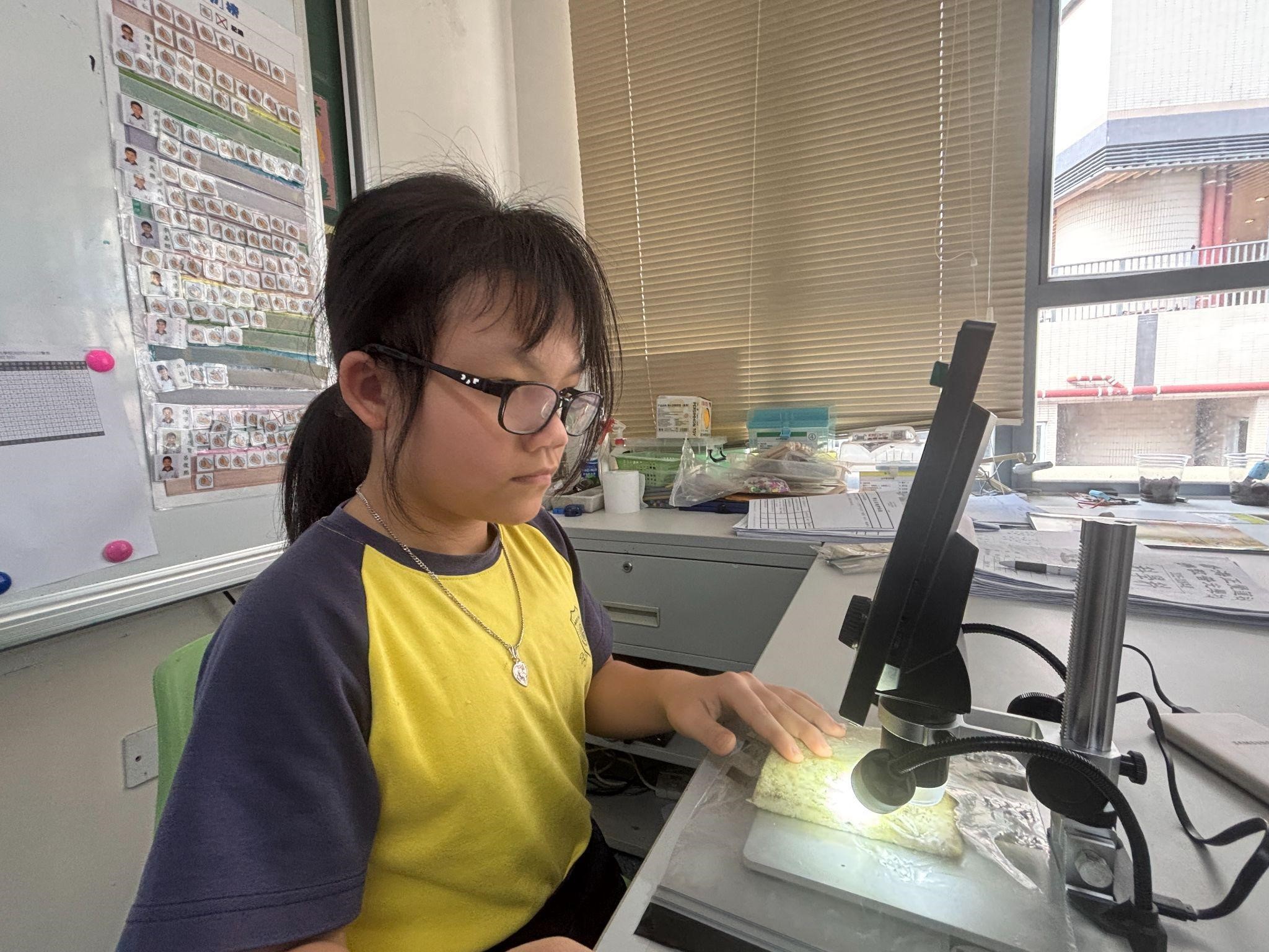 ![]() 科學科專題研習:學生運用電子顯微鏡觀察並記錄麵包發霉情況。 |