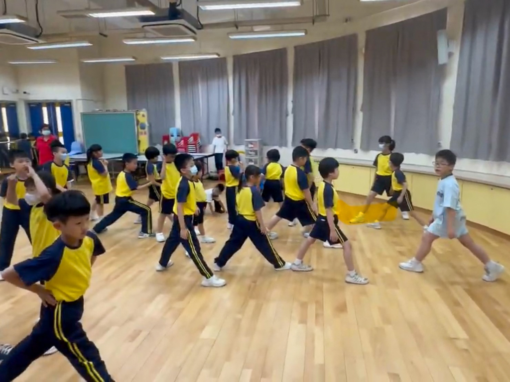 在有蓋操場中,本校設置了需要2至4人合作的遊戲,例如投地遊戲,旨在增強學生的團隊合作能力和社交技巧。另外,本校設立AI運動驛站鼓勵學生養成健康的生活習慣,並引導他們遵守輪替規則,提升社交能力。