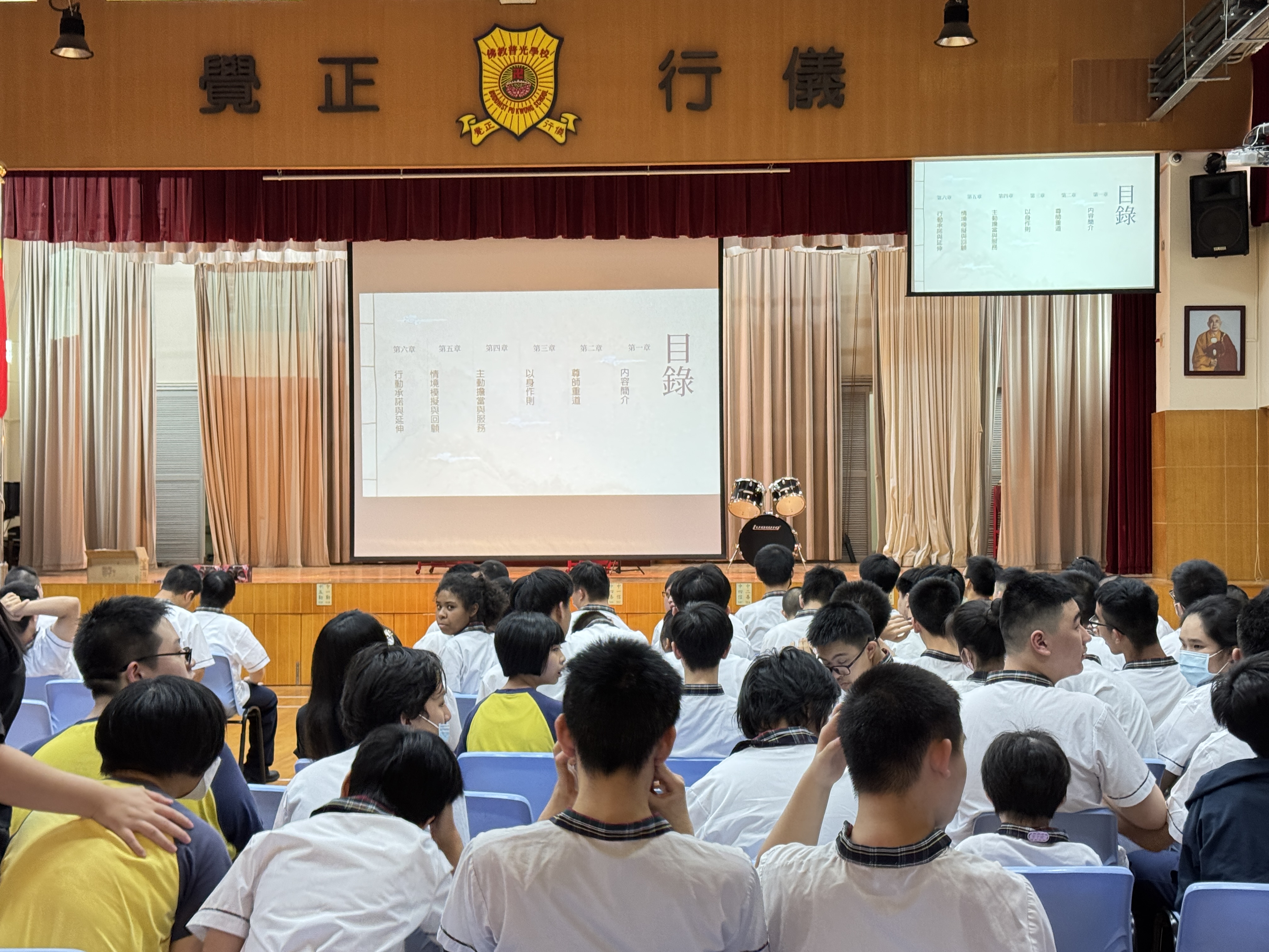 以「生活事件」為學習情境,讓學生在真實情境中體會與反思,從而培養正面的價值觀與積極的生活態度。透過月會講座及每週德育課的持續引導,全面涵蓋校園、個人、家庭及社群等層面,促進學生在多元環境中成長,建立健全品格與社會責任感。