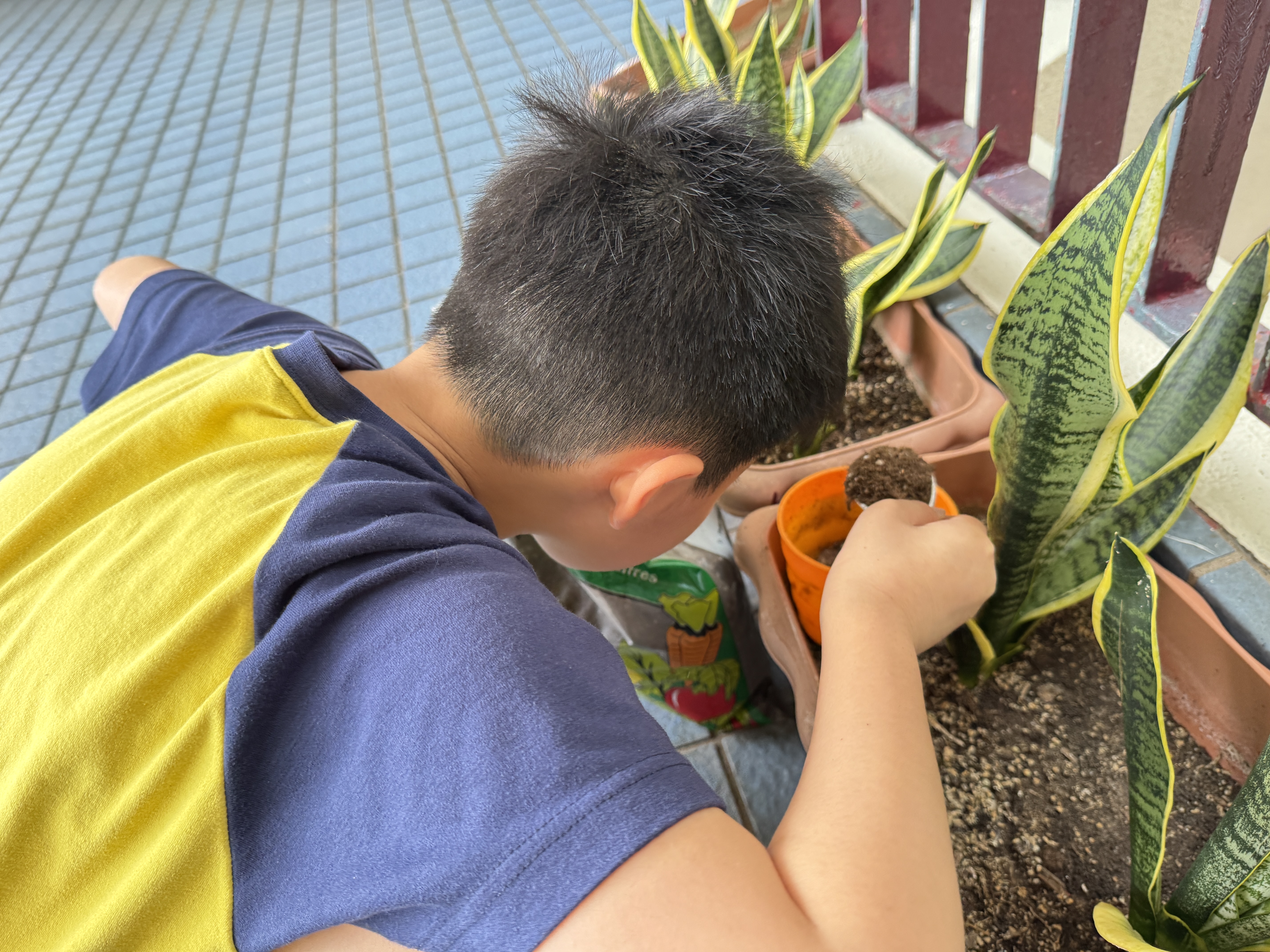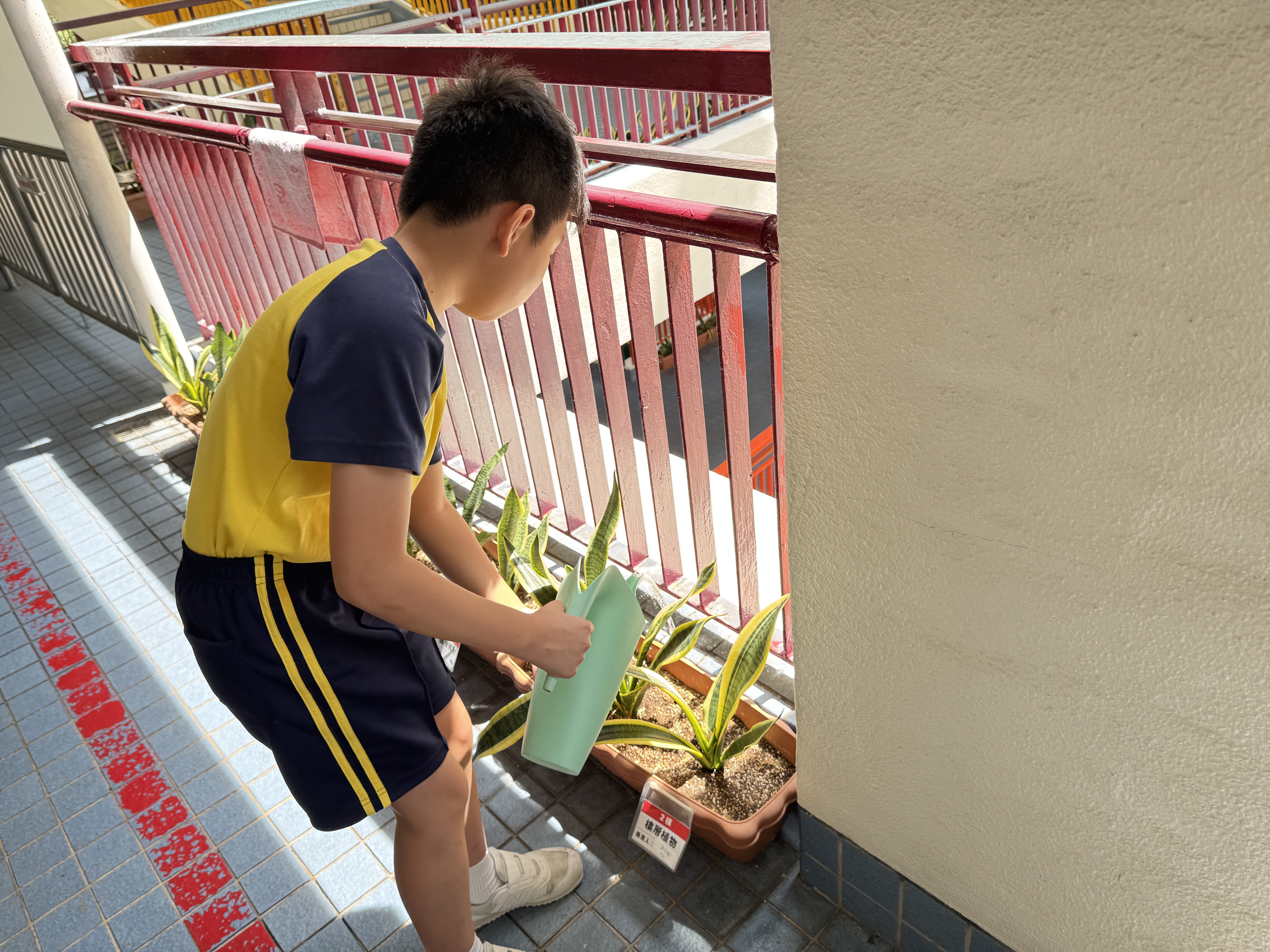 鼓勵學生恆常照料課室外的盆栽,透過親身參與植物的栽種與日常護理,讓學生在實踐中培養責任感與履行義務的態度,從細微處體會關懷與承擔的重要性。