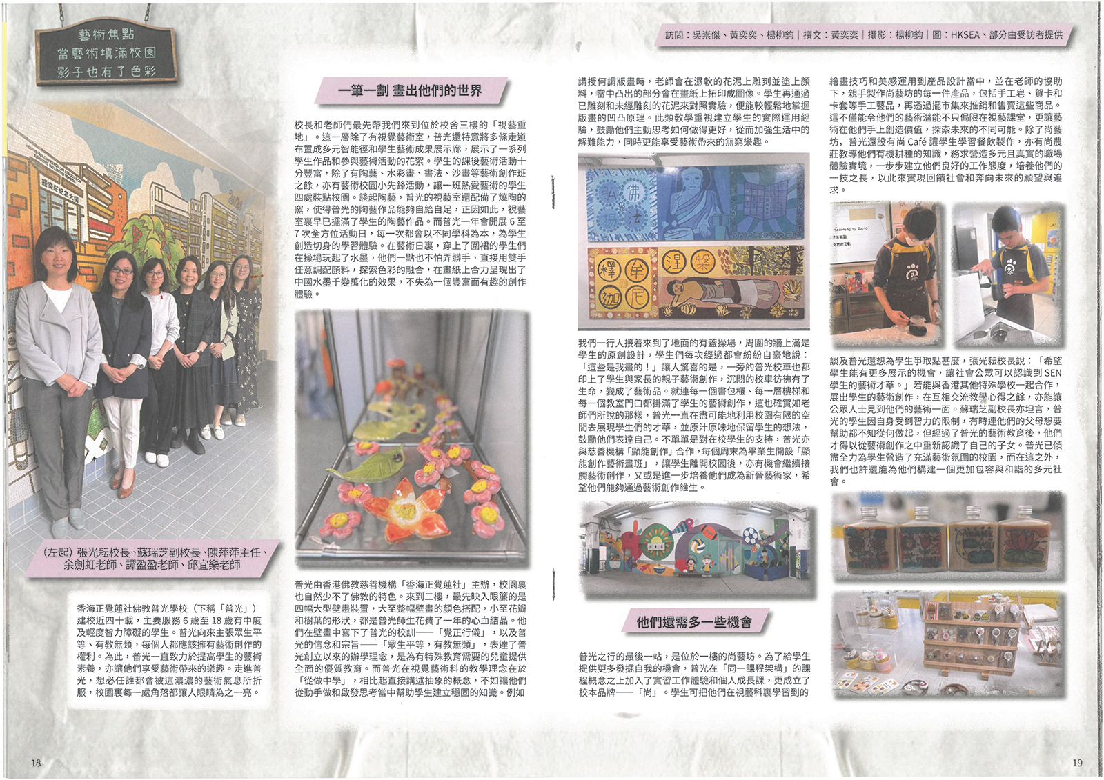 日前受香港美術教育期刊訪問視藝科的運作及尚藝坊的作品,我們參觀了學校各樓層不同大型展品、視藝室、欣賞學生作品,亦展示了不同獨特的教材,所有相關資料刊登於2024年第二期期刊。 |