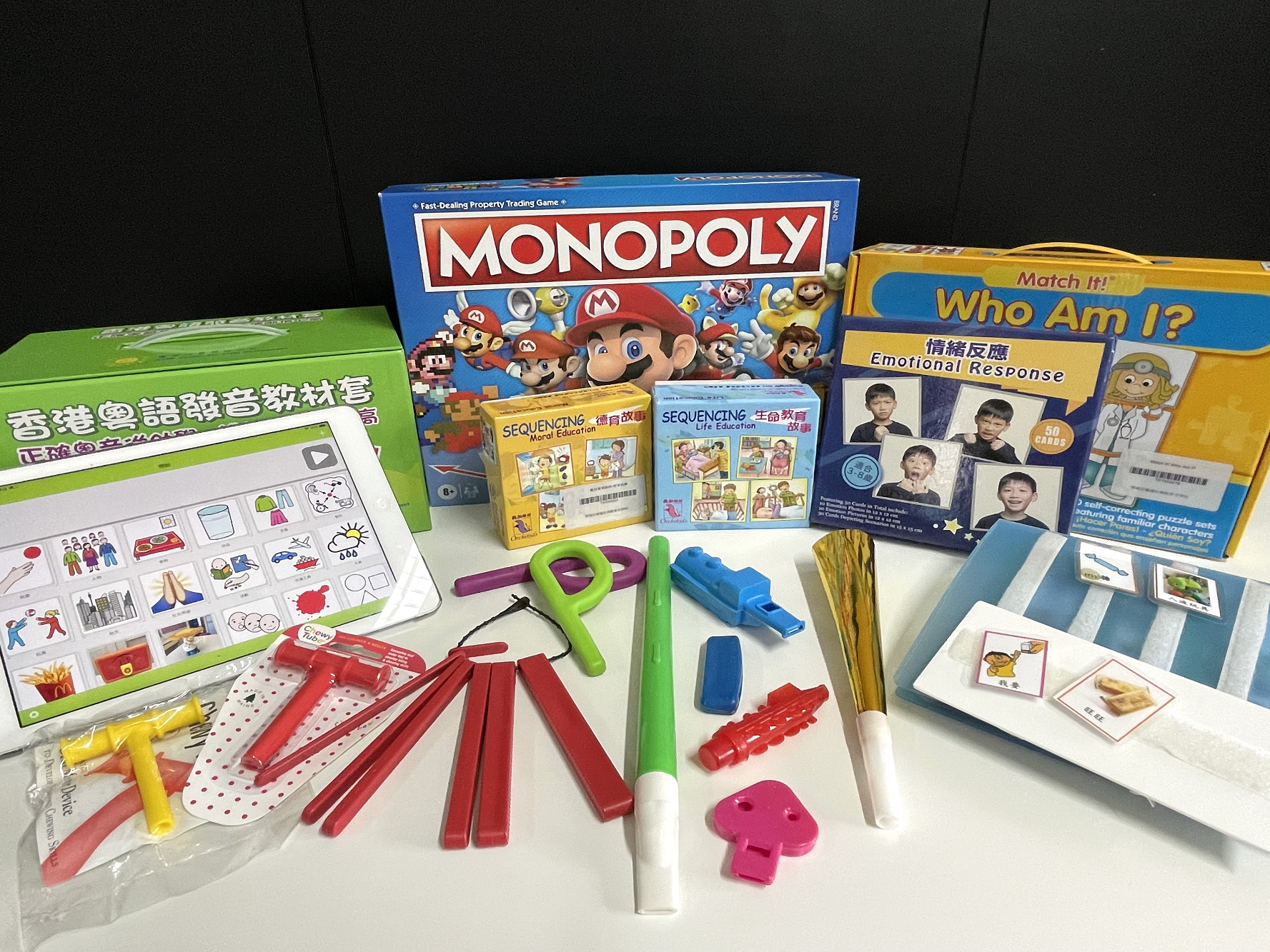 每間治療室內均有不同的治療教材,包括:語前玩具、教學圖咭、口肌工具以及桌上遊戲等。