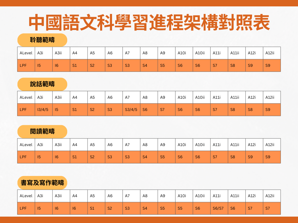 學生能配對同義詞、近義詞、反義詞等;學生能理解簡淺敘述的故事及段落大意;能欣賞文中簡單修辭字句,例如:指出文中的的疊詞;能明白簡短的網上留言/電話短訊所傳遞的訊息。學生能找出事情的起因、經過和結果以理解閱讀材料的因果關係,能根據閱讀材料中的結果,提出簡單的看法,按事情發展的順序找出事件發展的關係。 |